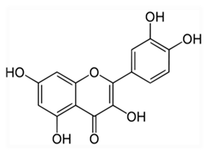 Figura 5. Estructura química del flavonoide quercetina con sus grupos oxidrilos. Fuente: Toscano et al., 2014