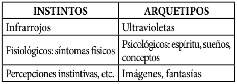 Jung utilizó el símil del espectro lumínico para ilustrar las diferencias entre el instinto y el arquetipo: los patrones instintivos del comportamiento y la imagen arquetipal son extremos polares del espectro continuo.