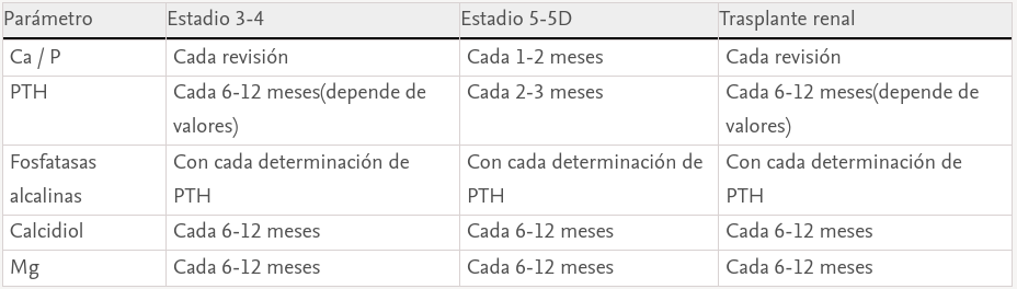 - Puede ser necesaria una mayor frecuencia en pacientes bajo tratamiento con calcimiméticos o con metabolitos activos de la vitamina D, sobre todo en periodo de ajuste de dosis.