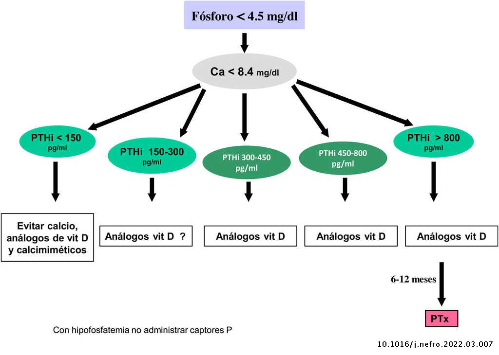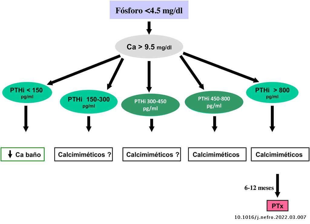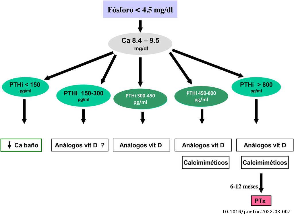 Por otra parte, los valores de calcio y fosfato aislados no son suficientes para el manejo de los pacientes con ERC, ya que es muy habitual la normalidad de calcio y fosfato a expensas de la presencia de HPTS, incluso severo.